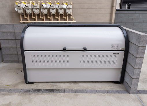大型ボックス(600mm)1基と、3サイズ構成のボックスを完備。重さのある荷物もしっかり受け取れます。